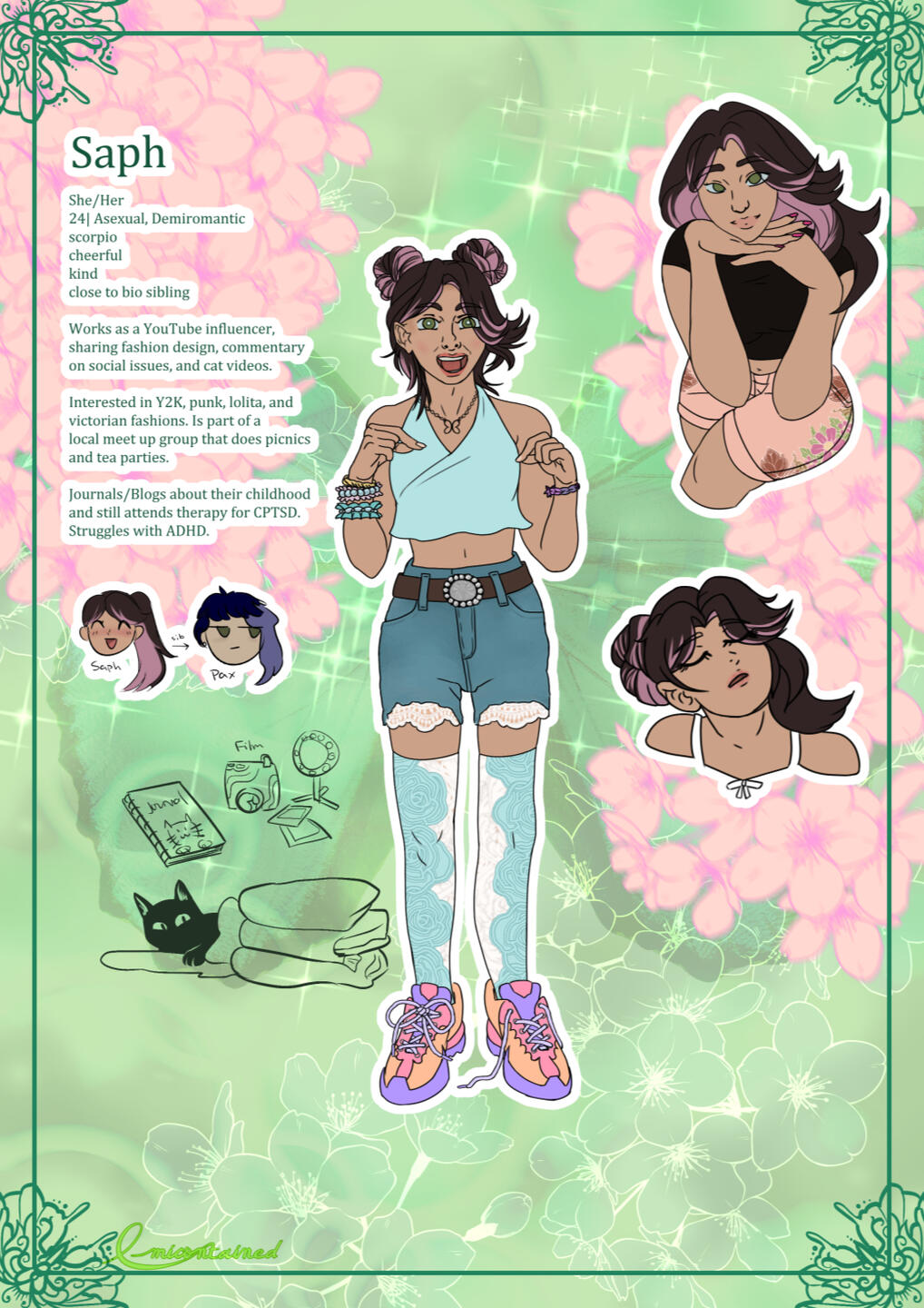 Hi I'm Emi (they/them), I also go by Hermit on several sites! Feel free to refer to me by either.My Mediums of choice include pencilwork, pen and ink, acrylic, watercolor. Digitally the programs I use include Clip Studio Paint (my current main) and Sai Paint Tool 2.Thank you, for your support and kindness!